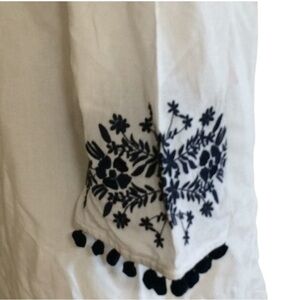 Trimmed with boho-inspired floral embroidery and fluttery pompoms, this floaty, shoulder-flaunting top feels right at home on the festival circuit