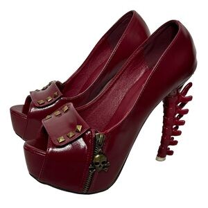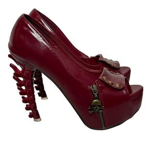 NWOT Show Story Skull Zipper Peeptoe Platform Bone Heel Club Pumps