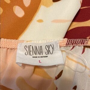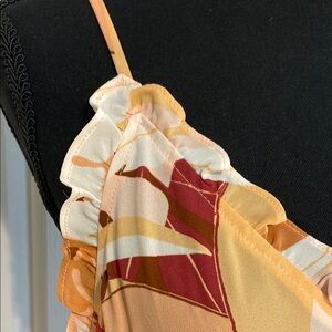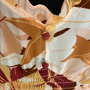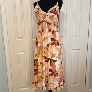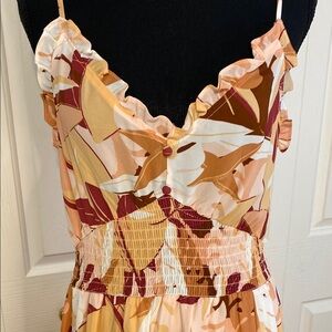 NWOT Sienna Sky Cream Pink Tropical Print Spaghetti Strap Ruched Waist Sundress