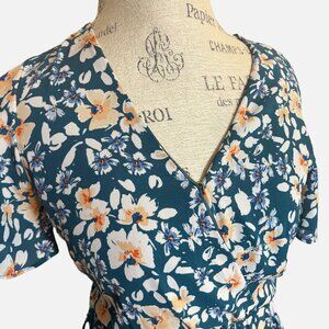 NWOT Sienna Sky Floral Midi Dress with Front Snap Closure – Flowy & Femi…