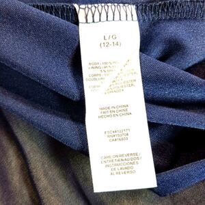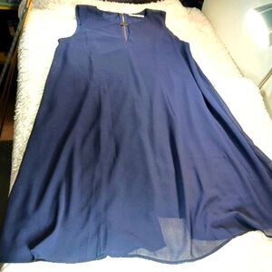Signature Collection Navy Sleeveless Dress: This dress has a keyhole neckline with gold detail in the front and a gold zipper in the back. This A-line blouson style dress has a unique neckline and a midi length. This navy chiffon features gold hardware at the neckline and a back exposed zipper.