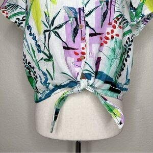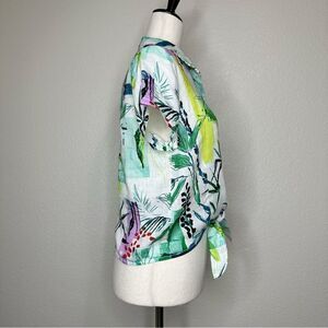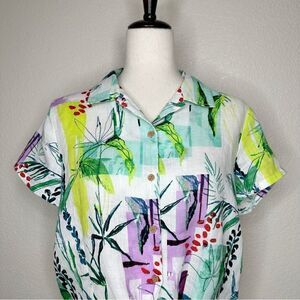 NWOT Sigrid Olsen 100% Linen Tropical Print Button Down Shirt