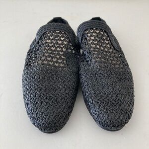 NWOT Silent D Anthropologie Raffia Black Slip On Slides Sz 36