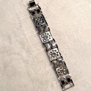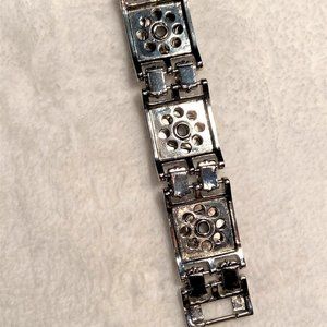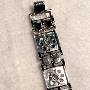 bracelet. Clasp closure. Bracelet has 3 crystals in each corner of each square, for a total of 48. All stones are imitation.