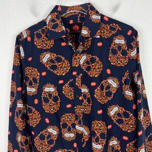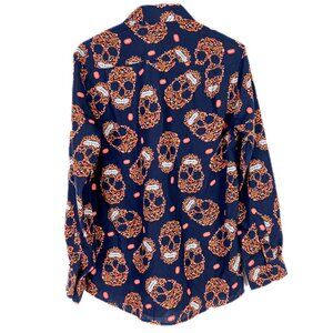 NWOT Simon Banks Pumpkin Skull Boo Long Sleeve Button Front Shirt Size Medium M