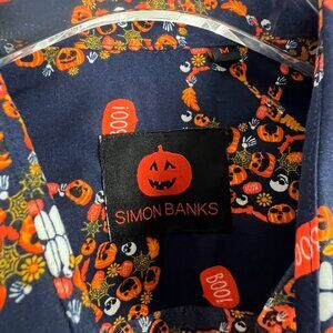 Super fun Simon Banks Pumpkin Skull Boo Long Sleeve Button Front Shirt! No flaws. Brand new without tags!