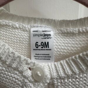 NWOT Simple Joys by Carter’s 6-9M Gender Neutral Cream Wool Sweater Cardigan