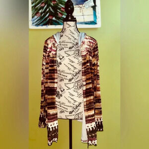 This burgundy and tan jacket is a lightweight with a velvety feel. NWOT