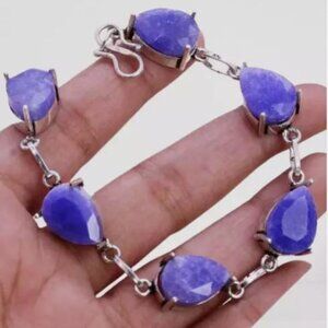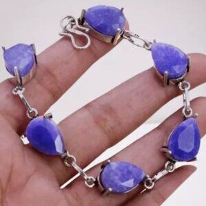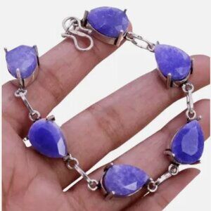 NWOT‎ Simulated Sapphire 925 Silver Plated Handmade Bracelet of 7" Ethnic