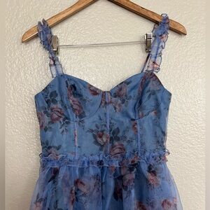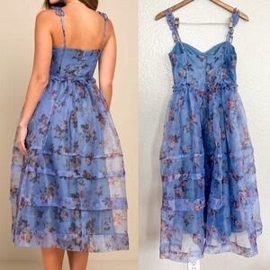 NWOT Sincerely Enchanting Periwinkle Floral Print Organza Midi Dress