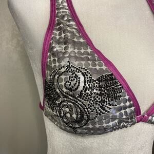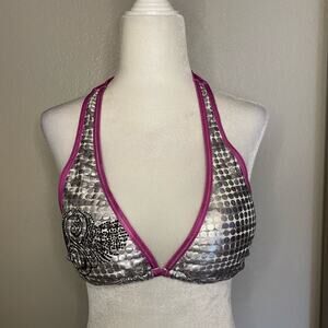 NWOT Sinful by Affliction silver/purple bikini top