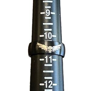 NWOT Size 10 1/2 Titanium band with etched skull and bat wings