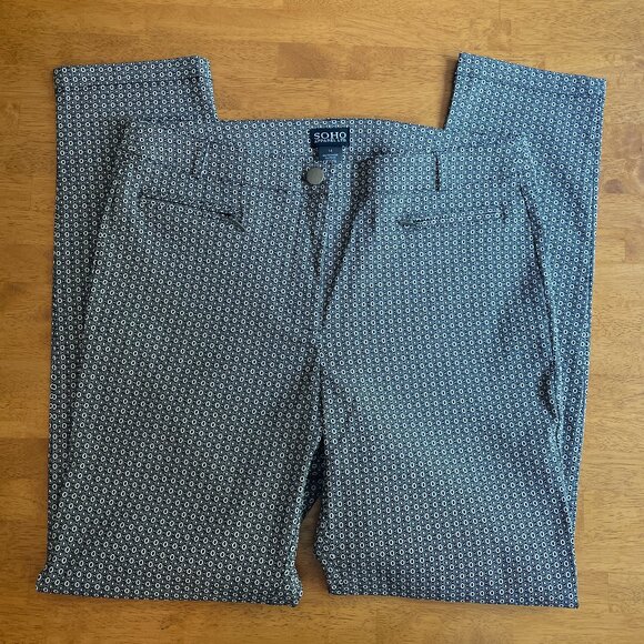 New without tags. Size 14 Soho Apparel Ltd. black-white patterned pants. Two front faux pockets with zipper details and two back pockets. Stretchy and super comfortable.