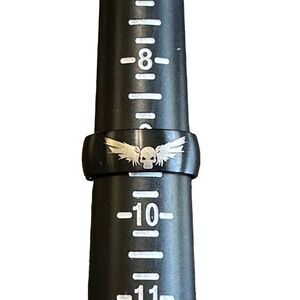 NWOT Size 9 Titanium band with etched skull and bat wings