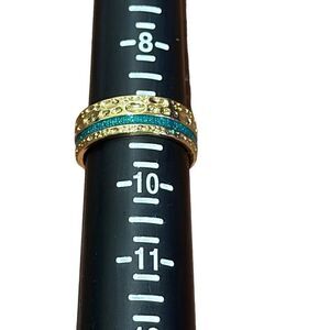 NWOT Size 9 Hammered gold alloy metal band with glittery teal inlay