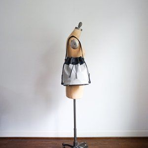 NWOT Skagen Blue Canvas and Leather Bucket Bag with an adjustable strap