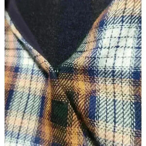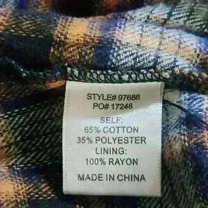 Perfect for fall, its made of a cotton/polyester blend - and the bodice is fully lined in a soft rayon fabric. It's a pull-over dress and the bodice closes with a snap (see photo).