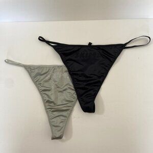 NWOT Skims Black & Gray Satin Stretch String Thong 2 Pack