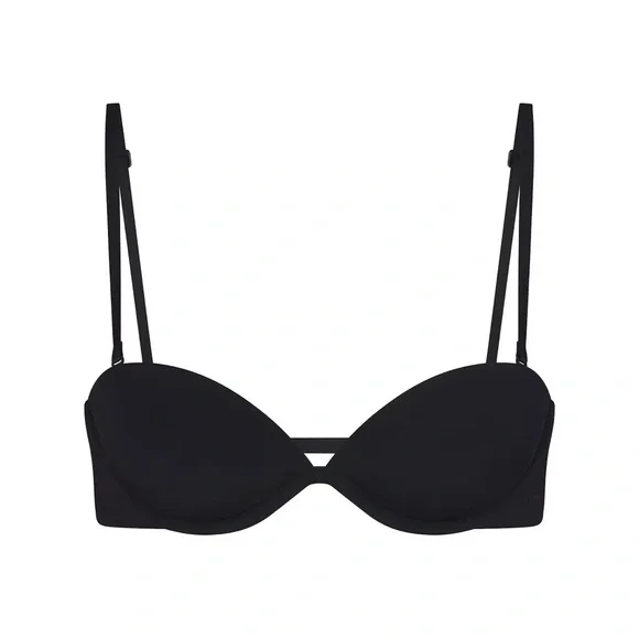 One solution for all your needs. This game-changing, lightly lined underwire bra is designed with four strap loops and removable straps that can be adjusted to wear 30 different ways — with every neckline and for any occasion. Features a plunge neckline, interior silicone technology for max grip, and side boning for added support. Some of the ways to wear it include: halter, strapless, one shoulder, criss-cross, and so many more. Pair the removable, adjustable center back strap with a bra extender for an invisible look under low-back styles. Fits true to your SKIMS bra size.