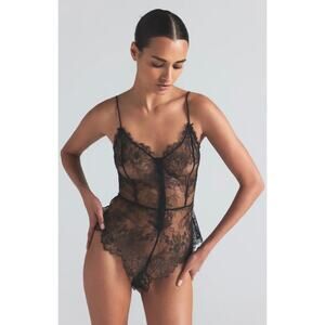 NWOT Skims Ultra Fine Lace Teddy in Onyx Black Size Medium