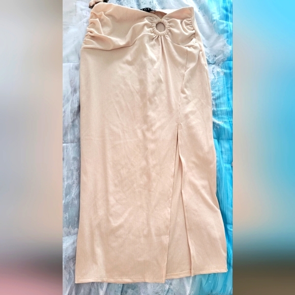 Super cute stretchy elastic waist midi skirt with high slit. NWOT