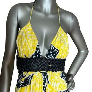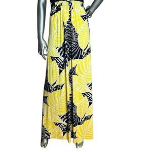NWOT Sky Yellow & Black Tropical Print Maxi Dress S XS (020)
