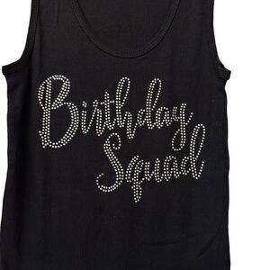 NWOT Sofra Cotton Rib Rhinestone Embellished Birthday Squad Tank Top Black Large