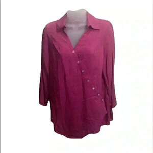 NWOT Tunic. Asymmetrical hem. Roll tab sleeves. Soft tencil material. Beautiful magenta color.