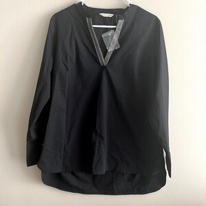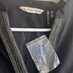NWOT Soft Surroundings Black Tunic Beaded Long Sleeve V Neck Shirt