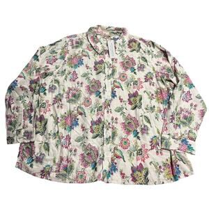 NWT Soft Surroundings Jordan Linen Shirt Button Up Ipanema Flowers Women's Plus Size 3X MSRP $99 Cream Green Pink