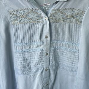 NWOT Soft Surroundings Tunic Button Front Blouse Coastal Cottagecore Sz 1X.