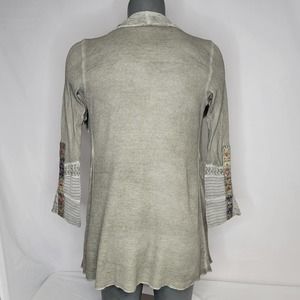 NWOT Soft Surroundings Waffle Knit Floral Aztec Cardigan Oriental Design Size PS