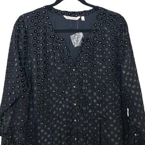 NWOT Soft Surroundings Womens Velvet Swiss Dot Blouse Black/Gold Size Large