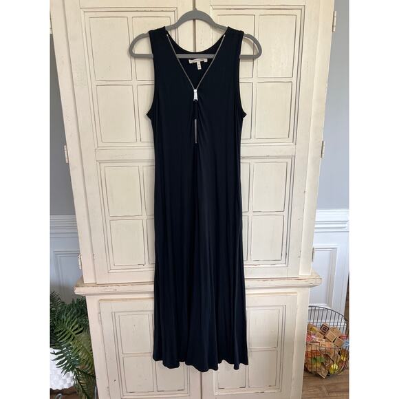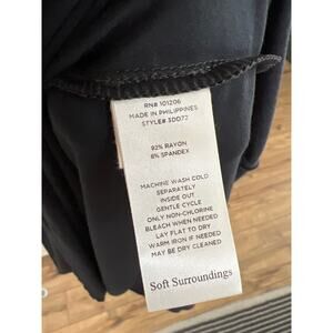 New without tags Soft Surroundings size petite small black stretch knit sleeveless dress that zips part way down the front. It has pockets and is super soft. Measures 17” from armpit to armpit. 18” across the waist and it is 52” long.