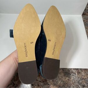 NWOT women’s size 7 sole society blue velvet pointed toe flats. Please review all photos for any signs of wear-pictured as is. Disclaimer: Any items with any wear/staining has not been treated, and unsure of ability to remove/treat condition. Comes from a smoke free home, bundle with other items to save & minimize shipping cost.