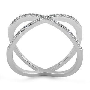 NWOT Solid Sterling Silver Overlapping X CZ Ring