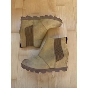 NWOT Sorel Joan Of Arctic Wedge Chelsea Boot Tan Cognac Wedge 9.5