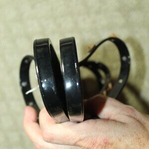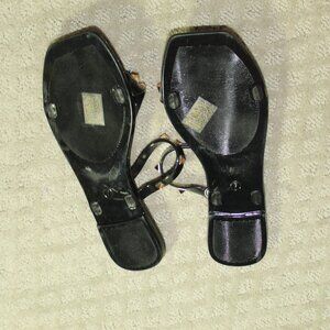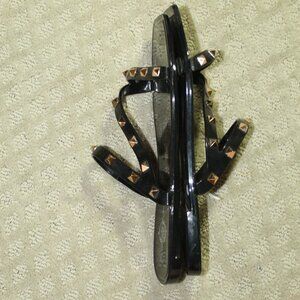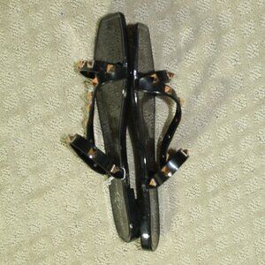NWOT Soulmates Women's 7 Black Plastic Gold Tone Studs Flat Sandals