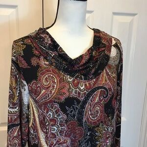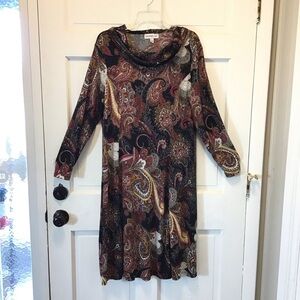 NWOT Southern Lady Paisley Print Long Sleeve Cowl Neck Shift Dress Size Large