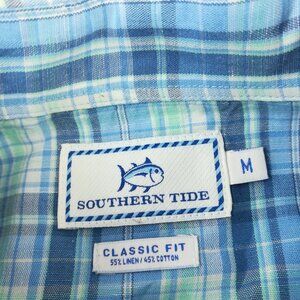 NWOT Southern Tide Shirt Linen Blend L/S Button Down Plaid Blue Mens Medium