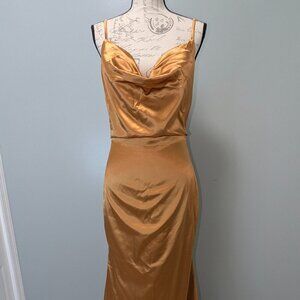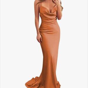 NWOT Spaghetti Straps Silk Satin Bridesmaid Dresses Cowl Neck Mermaid Prom Dress