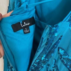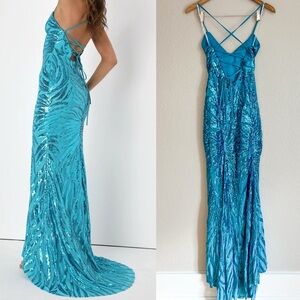 NWOT Sparkle 'til Dawn Teal Blue Sequin Lace-Up Mermaid Maxi Dress