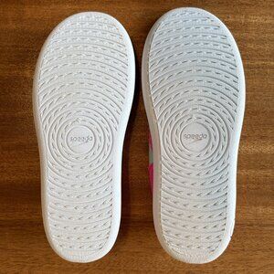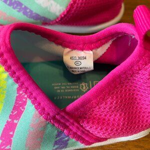 New without tags – great kids’ striped pool shoes by Speedo, in toddler size XL (11-12). Protects little feet and has UV protection. Great traction, lightweight, easy pull-on and off. Breathable 100% polyester upper, flexible outsole, machine washable, air dry.