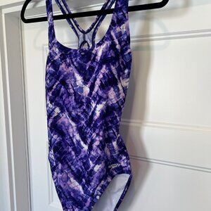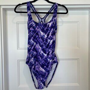 NWOT Speedo Women Size 12 Purple/White Tie Dye One Piece Swimsuit