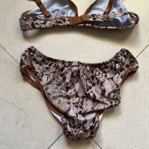 NWOT Spell leopard print bikini set. Never worn. No longer sold. Feels like swim material. Not sure if designed for swim. but could also be worn as a bra and underwear set.