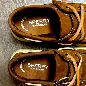 Sperrys boat shoes are classics, both the essence of preppy and functional to boot. Shoes remain in new condition as well as the Velcro. No imperfections noted. Son never wore.