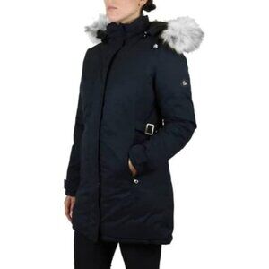 This parka coat, featuring a luxurious faux fur trim, offers both style and functionality. Designed for colder climates, the coat provides ample warmth with a sophisticated flair. The adjustable waist ensures a snug fit, accentuating the silhouette, while the hood offers additional protection against the elements. An essential addition to a winter wardrobe, this coat seamlessly blends elegance with practicality, making it a suitable choice for those who value both fashion and comfort.