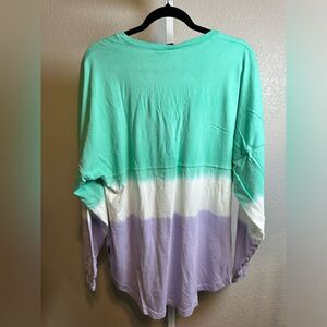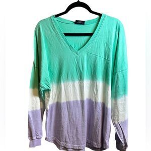 NWOT Spirit Jersey Women’s Green Purple Tie Dye V Neck Long Sleeve Tee Shirt - M