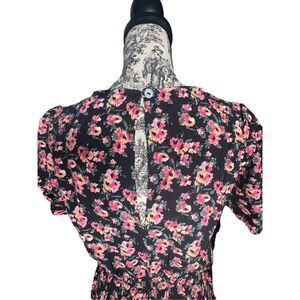 NWOT Spirit Of Grace Women's Short Puff Sleeves Floral Tea Midi Dress Size M