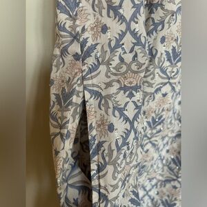 Size S. Color is Patina Garden. V cut neckline. Has silver thread detail throughout. Super pretty print! Calling NWOT because the tag got pulled off, but it still has the plastic tag piece on the label. Has pockets!